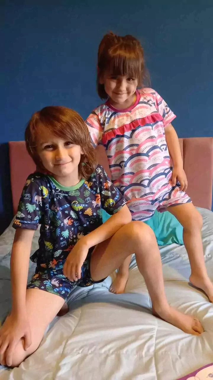 Conjunto dos partes remera y short, en spum una tela suave y con una elasticidad que las hace super cómodas.,preciosos estampados con divertidos dibujos para que tu peque pueda jugar comodo