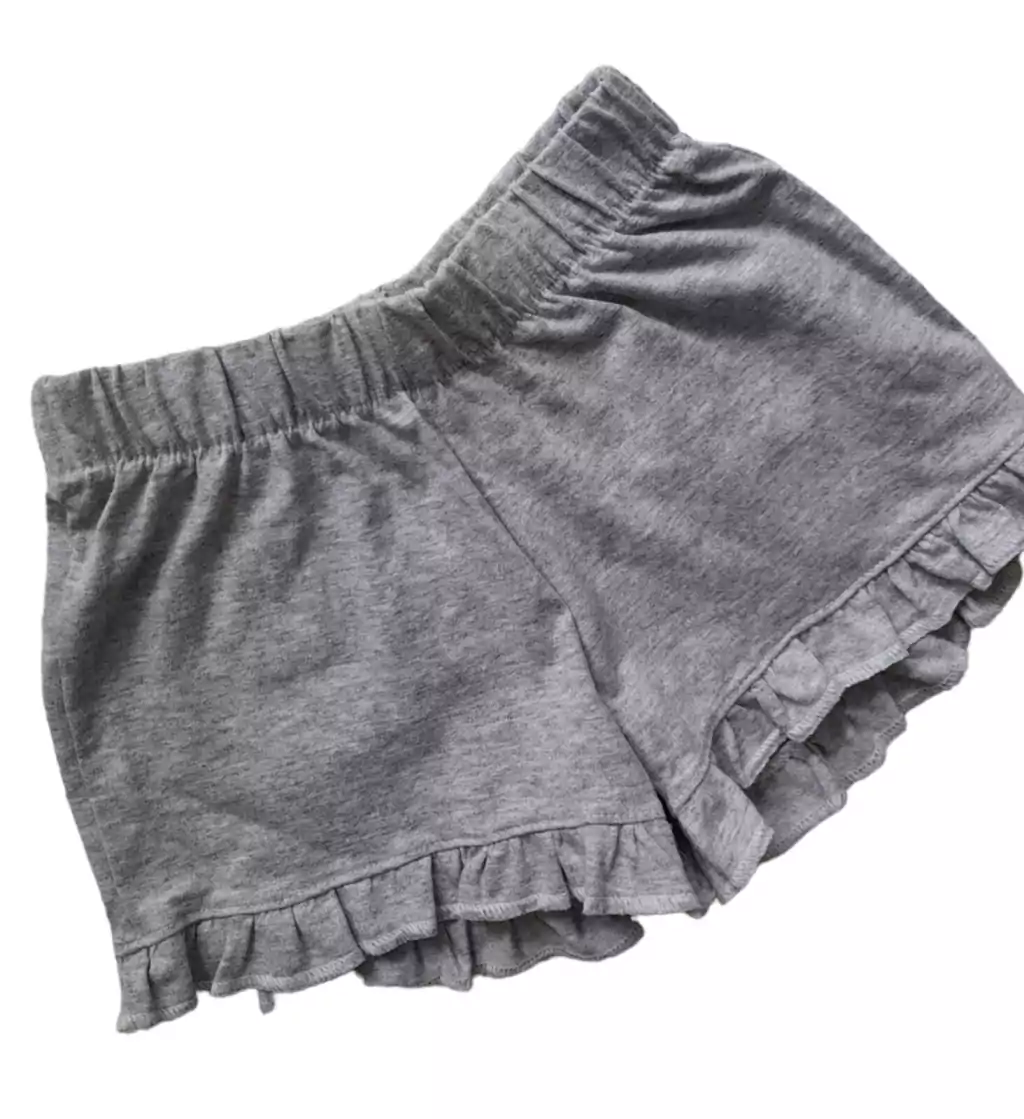 Short de algodón liso con voladitos color gris. naranja y blanco , súper clásico y cómodo. Es un infaltable para todos los días de calor, que presta comodidad y color a los outfit de tu niña. Tiene elástico en su cintura y es ideal para cualquier ocasión y momento del día.